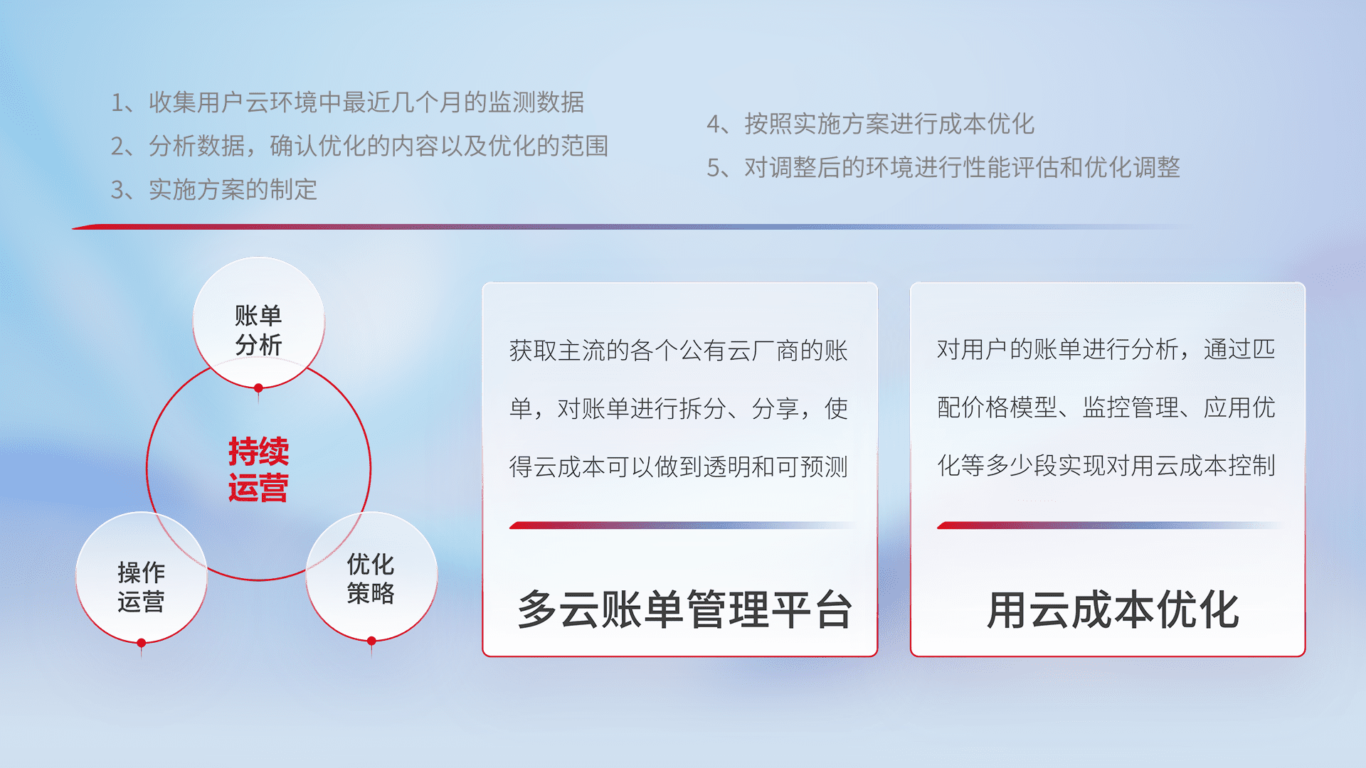 运用智能化工具分析云资源,,,提供日常费用可视化工具,,,,自动账单拆分,,,,成本优化云上费用,,,降本增效。。